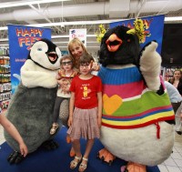 Puși pe distracție și plini de energie, micuții fani s-au adunat curioși într-un număr impresionant în jurul mascotelor lor favorite, Erik și Lovelace, învățând de la aceștia dansuri amuzante și cântecele vesele din lumea magică a pinguinilor Happy Feet. Pe lângă numeroasele concursuri cu premii, prichindeii s-au distrat participând și la sesiuni de facepainting tematice care i-au adus și mai aproape de eroii favoriți. Roxana Iliescu impreuna cu fetitele ei s-au amuzat alături de cei mici aplaudând lansarea pe DVD a uneia dintre animațiile lor preferate.