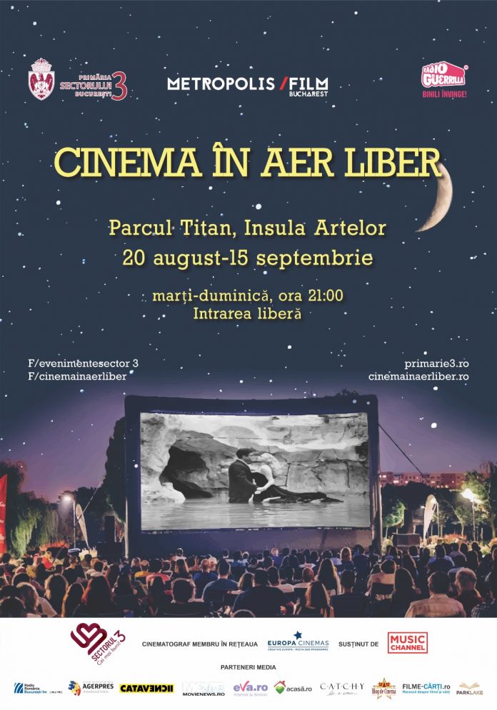 Primăria Sectorului 3, împreună cu Metropolis Film, organizează, în perioada 20 august – 15 septembrie, cea de-a VII-a ediție a evenimentului „Cinema în aer liber”. Cinema în aer liber vine anul acesta cu o selecție de 20 de filme, dintre care 10 filme noi în selecția oficială, apreciate la nivel global de către public și criticii de film.