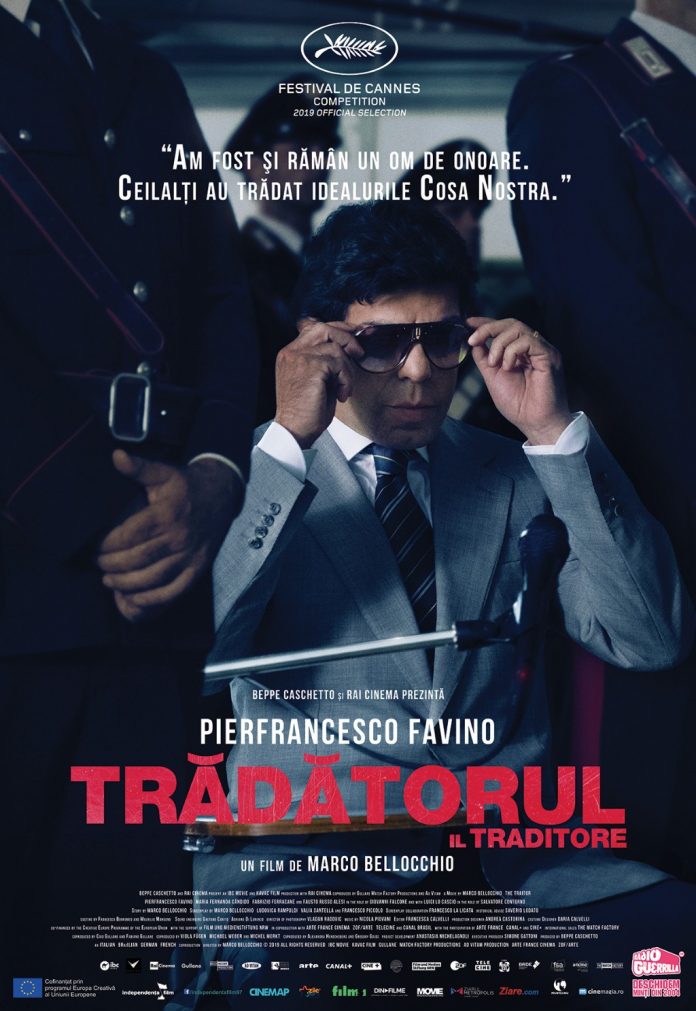 Trădătorul/ Il Traditore este cel de-al 26-lea film al lui Marco Bellocchio (80 de ani), care i-a adus acestuia cea de-a șaptea nominalizare la Palme d’Or și a reprezentat propunerea Italiei pentru Oscar 2020. Lansat la Cannes 2019, Trădătorul a fost aplaudat la scenă deschisă timp de 15 minute de publicul prezent la premieră, iar presa s-a întrecut în cronici laudative la adresa actorului Pierfrancesco Favino, interpretul lui Tommaso Buscetta, cunoscut publicului larg din producții precum The Chronicles of Narnia: Prince Caspian, World War Z. sau Suburra.