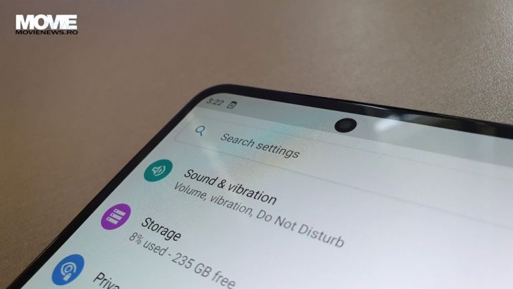 La categoria senzori avem cel de amprentă (în butonul de Power), accelerometru, giroscop, proximitate și compas, iar bateria este de 4500 mAh cu suport Fast Charging 30W.