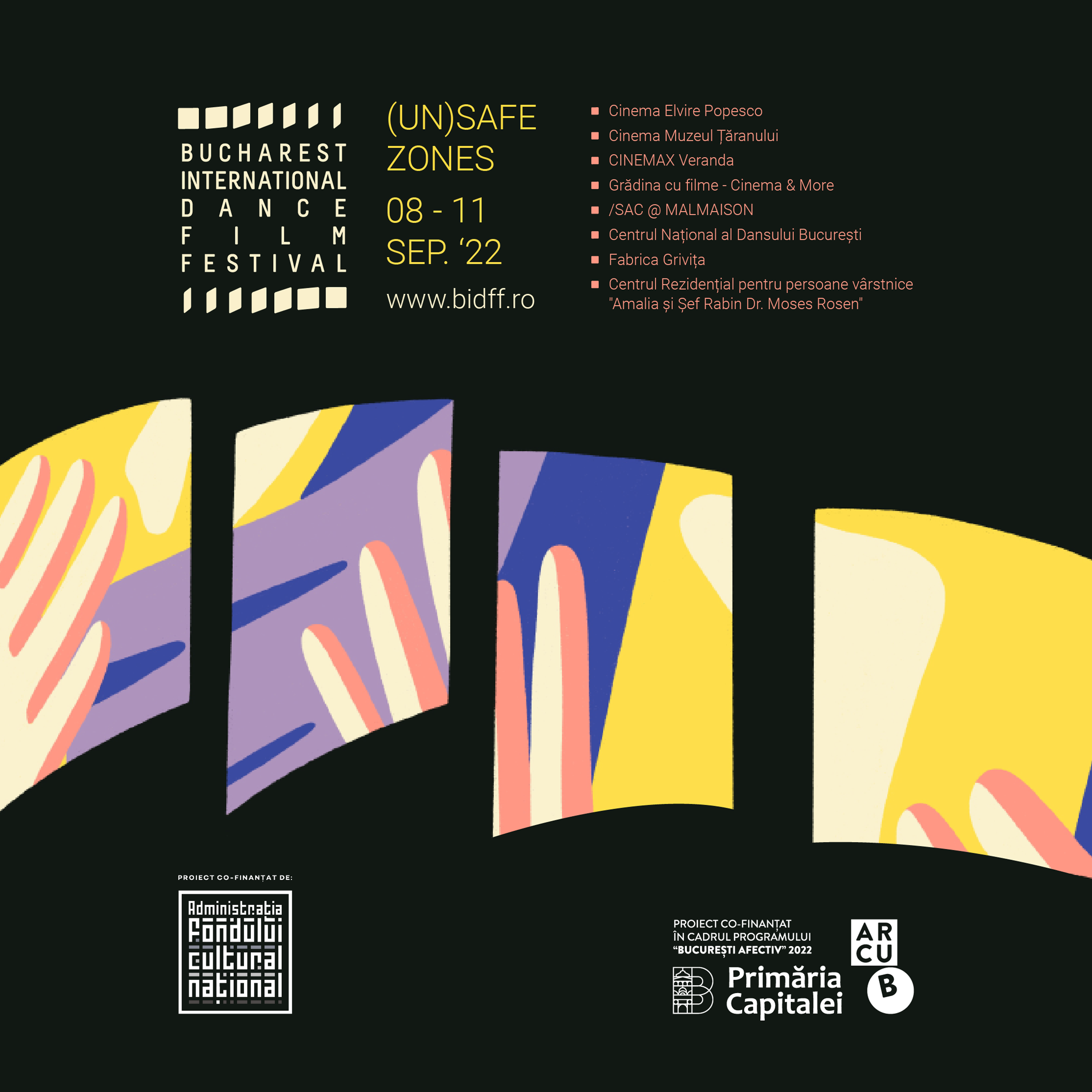 „Bucharest International Dance Film Festival, ediția a VIII-a” este un proiect cultural co-finanțat de Administrația Fondului Cultural Național – AFCN* și de Primăria Municipiului București prin ARCUB în cadrul Programului București afectiv 2022** și se va desfășura în perioada 8 – 11 septembrie la București.