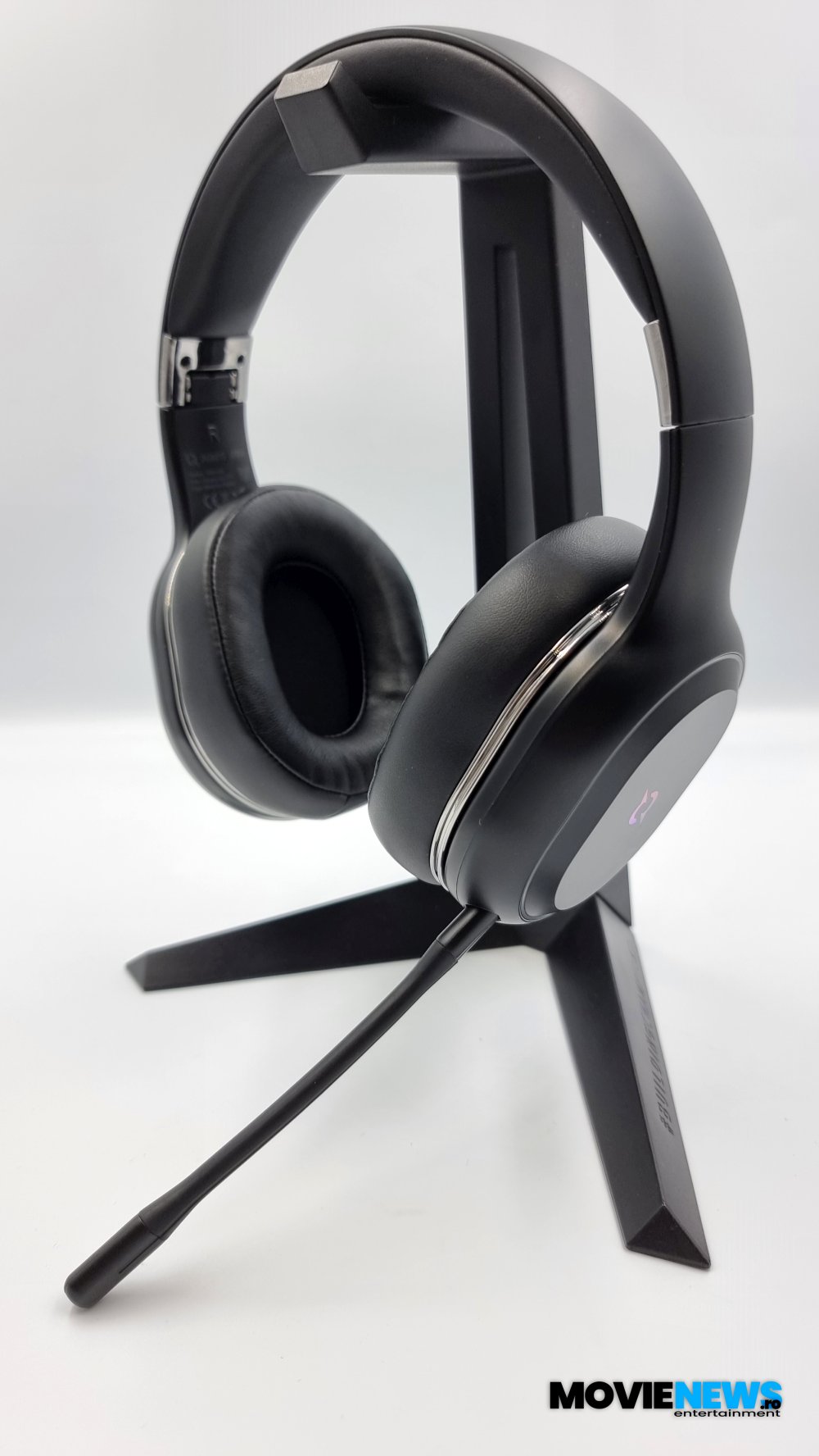 Prima oară când le-am luat în mână, pliate fiind, ocupă puțin spațiu și nu sunt voluminoase deloc, dar apoi când rabatezi cupele arată ca niște căști rezistente, atent lucrate – ca metariale și acele balamale care permit plierea cupelor. Sunt ușoare, bentița are interior moale și după sesiuni lungi de gaming am descoperit că sunt destul de comode și cupele mulțumită pernuțelor foarte moi. Plasticul negru mă așteptam să fie mai magnet de amprente decât e, și asta e un bonus binevenit.
