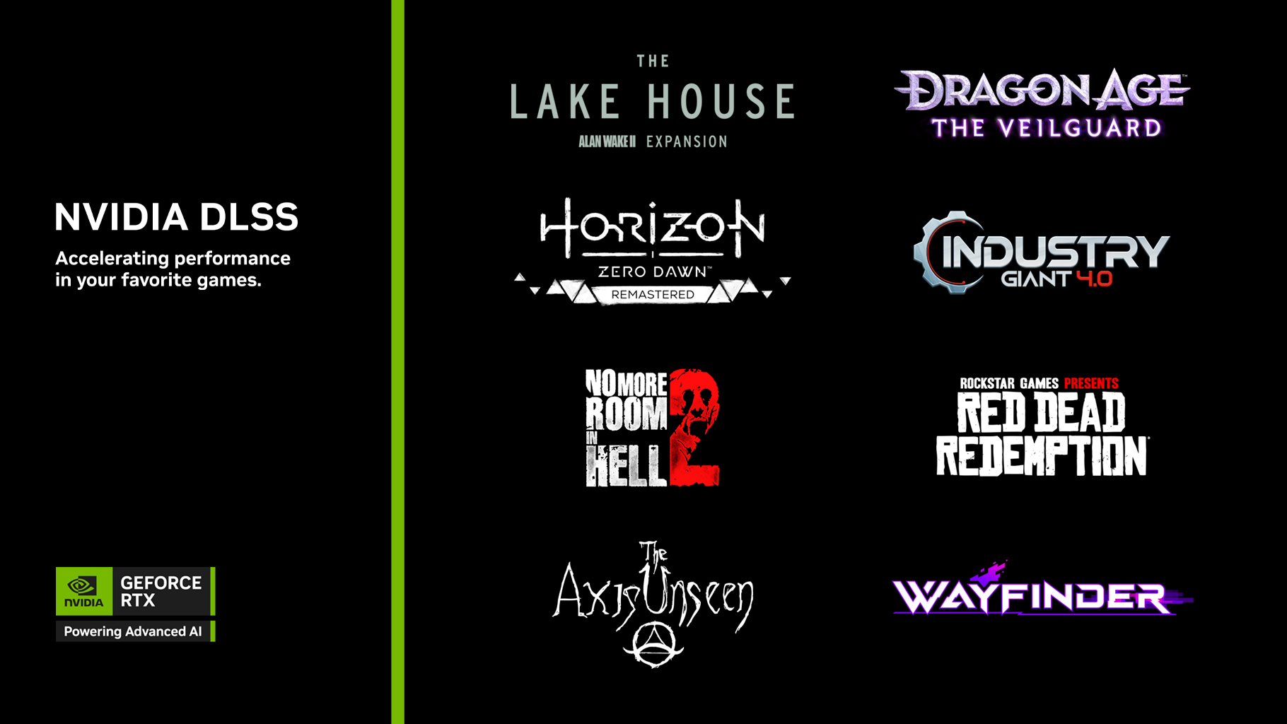 Astăzi am lansat și cel mai nou driver Game Ready, care este echipat cu suport pentru multe dintre aceste jocuri noi, toate oferind suport pentru DLSS 3 cu Frame Generation și Super Resolution. Prin instalarea noului driver vei optimiza experiența în Alan Wake 2: The Lake House, Call of Duty®: Black Ops 6, Dragon Age™: The Veilguard, Horizon Zero Dawn™ Remastered, No More Room In Hell 2, Red Dead Redemption și The Axis Unseen.