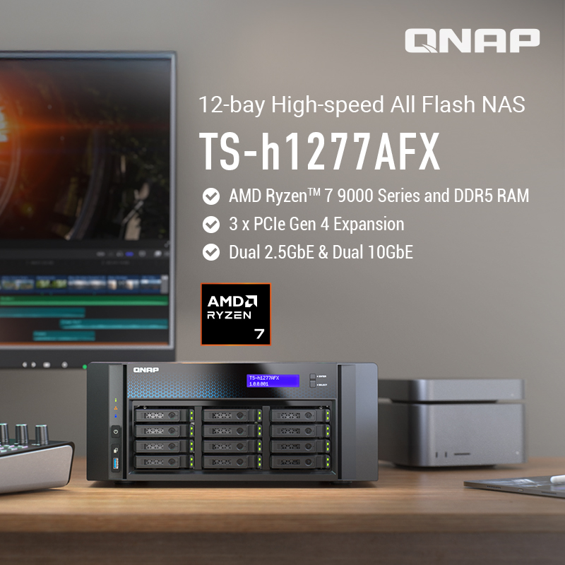 QNAP prezintă TS-h1277AFX – NAS all-flash cu procesor AMD Ryzen™ 9000 și conectivitate până la 25GbE