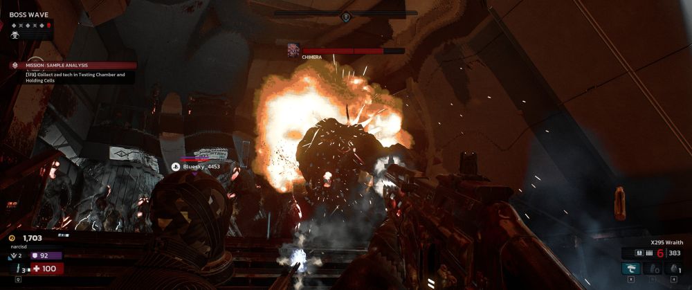 Și mai sunt anomaliile, pot spune cu mâna pe inimă că aici Killing Floor 3 ridică ștacheta. Aruncă grenade cu gaz verde, infectează hărțile. Nu doar că te sufocă, dar îți rup ecranul în două. Imaginea se multiplică, se dublează, se rupe. În mijlocul haosului, când ții linia de apărare și brusc vezi dublu, creierul ți se oprește. Panica intră în oase. Geangavelienii urlă „NU STA ÎN GAZ!”, dar e prea târziu, deja vezi două scrake-uri acolo unde e unul singur.