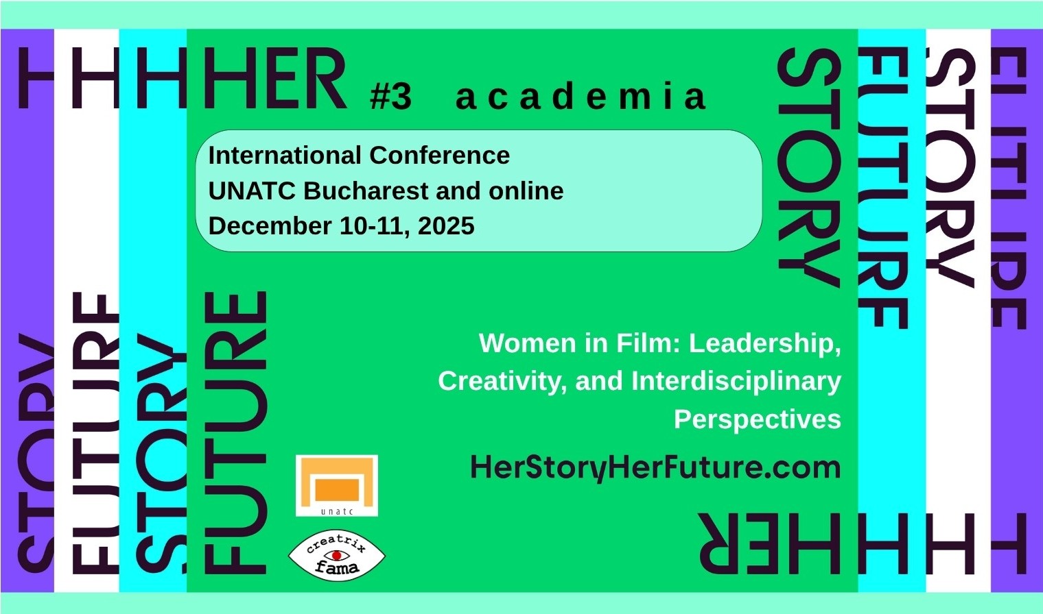 Creatrix Fama, în parteneriat cu Universitatea Națională de Artă Teatrală și Cinematografică „I.L. Caragiale” (UNATC), anunță deschiderea înscrierilor pentru conferința internațională hibridă Women in Film: Leadership, Creativity, and Interdisciplinary Perspectives, care va avea loc în perioada 10–11 decembrie 2025, la București și online, prin Zoom.