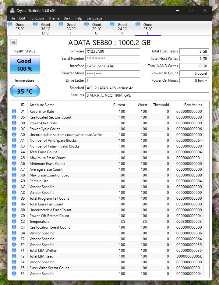 Pentru a obține mai multe informații despre ADATA SE880, am folosit o aplicație specifică pentru monitorizare și analiză: