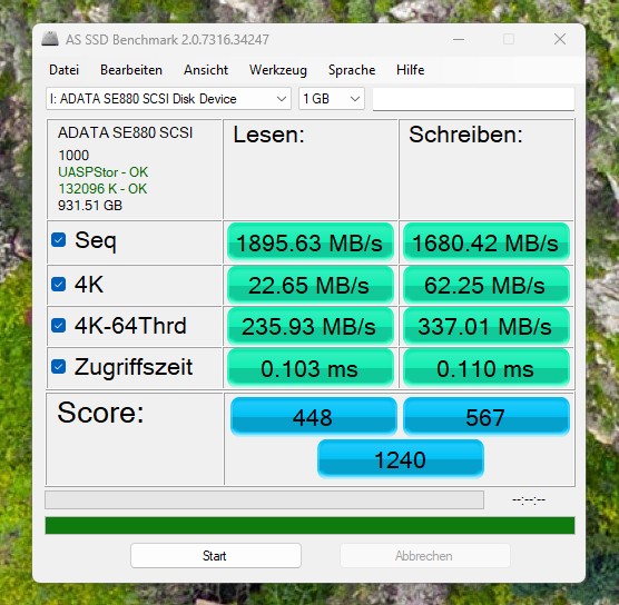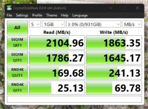 Testele au fost efectuate corespunzător, pe interfața USB Type‑C 3.2 Gen2 x2, iar rezultatele, după cum se poate observa, au fost conforme cu specificațiile producătorului, vitezele de transfer atingând maximum 2000 MB/s.