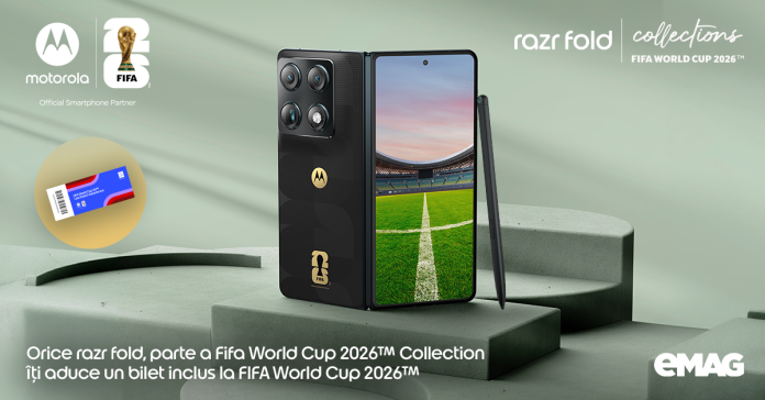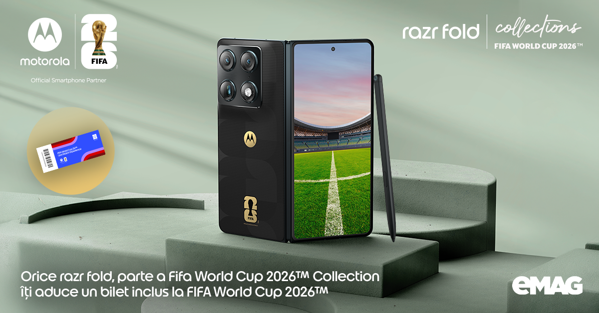 Motorola Romania anunță deschiderea precomenzilor pentru primul său smartphone pliabil tip book-style, motorola razr fold. Ca parte a acestui lansări, varianta motorola razr fold, parte a FIFA World Cup 2026™ Collection, disponibilă exclusiv pe eMAG, oferă consumatorilor acces garantat la un meci FIFA World Cup 2026™.