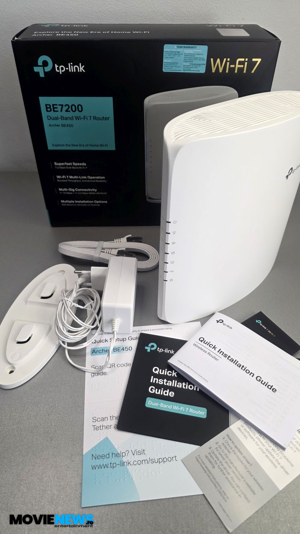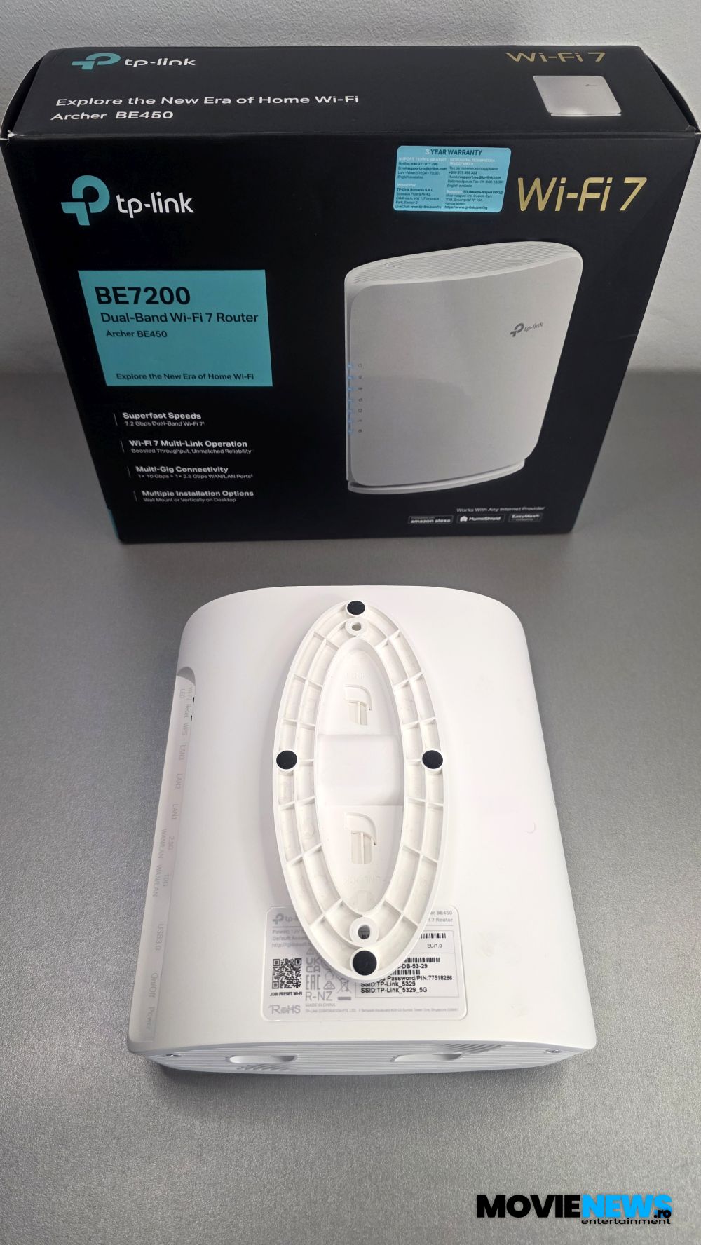 Acum că am analizat puțin situația standardelor Wi‑Fi de la noi și am aflat câte ceva și despre Wi‑Fi 7, putem trece la „elefantul” din acest articol, și anume TP‑Link Archer BE450 – Router Wi‑Fi 7 Dual‑Band BE7200.