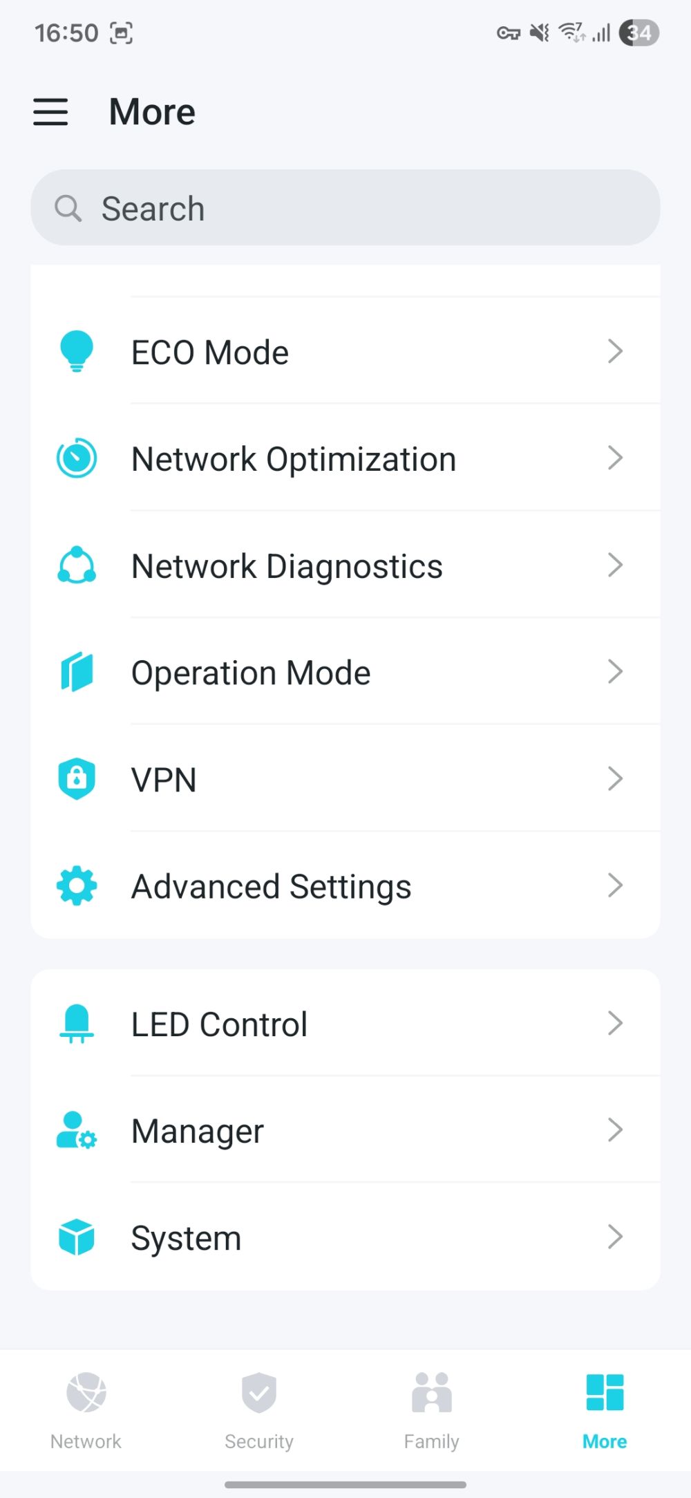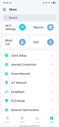 Aplicația oferă acces la o multitudine de opțiuni de configurare și administrare. De acolo poți, de exemplu, să oprești LED‑urile dacă te deranjează noaptea, să faci upgrade de firmware (sau să programezi actualizarea la o anumită oră), să gestionezi dispozitivele conectate — fie prin cablu, fie prin wireless — și să verifici dacă există interferențe sau eventuale probleme. Poți seta niveluri de securitate, controale parentale, poți limita viteze sau bloca anumite conexiuni.