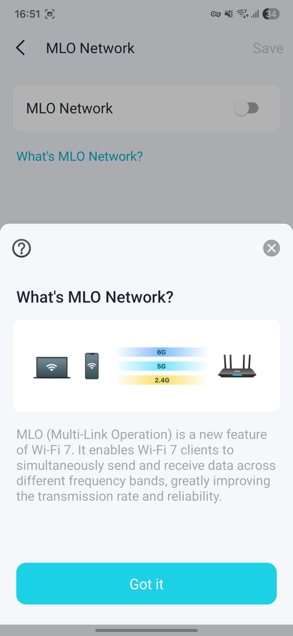 Wi‑Fi 7 introduce și 4K‑QAM (Quadrature Amplitude Modulation), care permite o densitate mai mare de date transmise în același interval de timp, crescând eficiența și viteza în condiții de semnal bun. O altă noutate importantă este Multi‑Link Operation (MLO), ce permite dispozitivelor să se conecteze simultan pe mai multe benzi (2.4 GHz, 5 GHz și 6 GHz), oferind astfel stabilitate crescută, viteze mai mari și o latență mai mică.