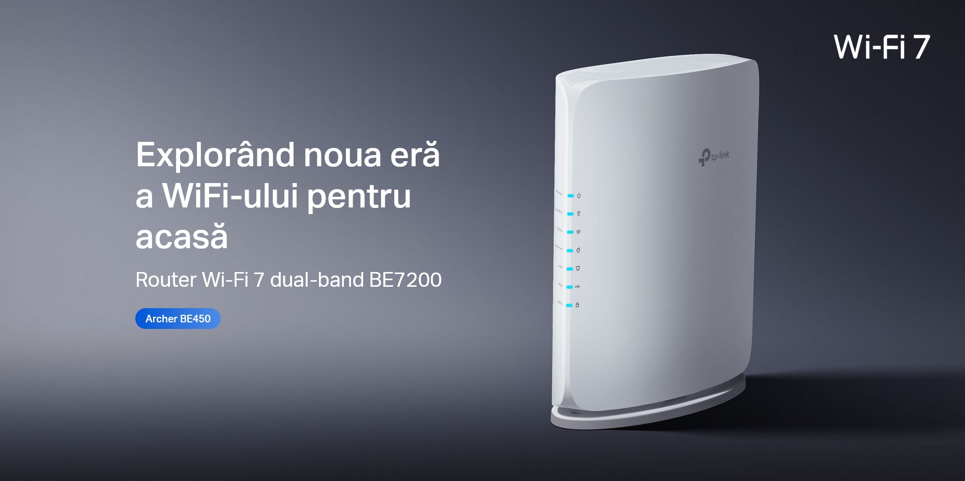 TP-Link Archer BE450 Router Wi-Fi 7 Dual-Band BE7200 se comercializează la un PRP de 79.99 lei.